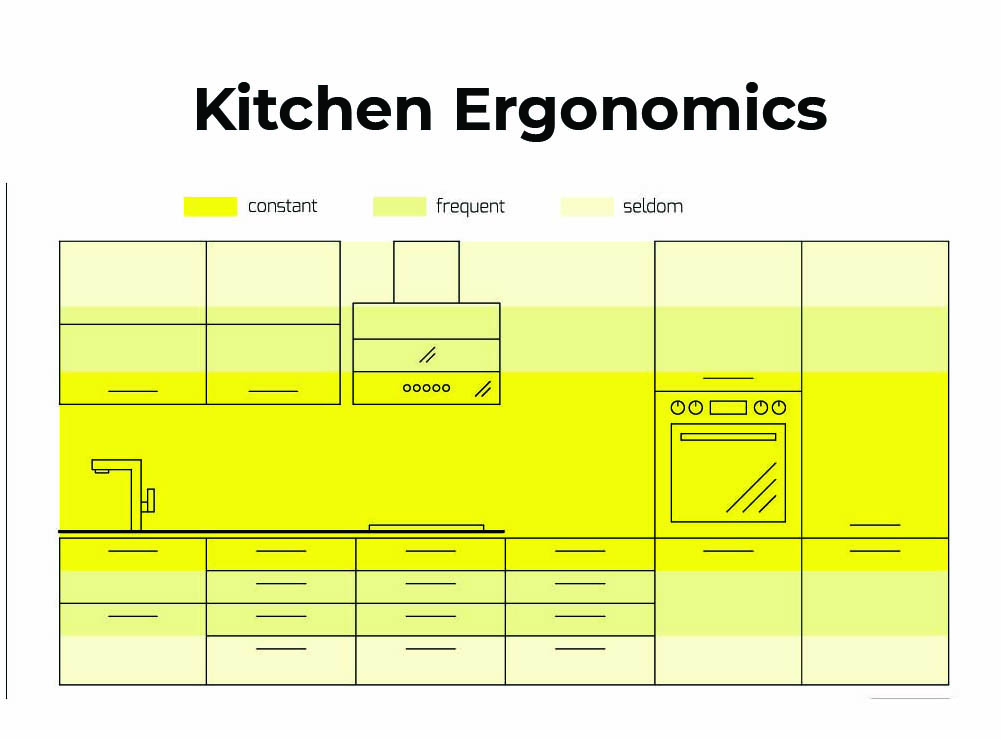 Kitchen ergonomics is the study of designing and arranging a kitchen space in a way that maximizes efficiency, comfort, and safety. It takes into consideration the physical and cognitive capabilities of the people using the kitchen, and aims to create a functional and user-friendly environment for cooking, cleaning, and other kitchen activities. Here are some key principles of kitchen ergonomics: